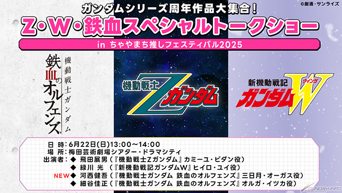 ちゃやまち推しフェスティバル2025「Ζ・W・鉄血スペシャルトークショー」に河西健吾の登壇が決定!ガンダムチャンネル&バンダイチャンネルでの無料配信も!