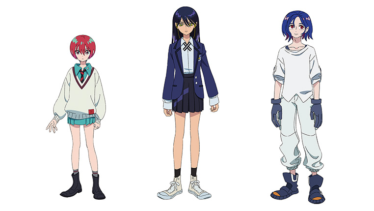 メインキャラクターであるアマテ・ユズリハ(マチュ)、ニャアン、シュウジ・イトウを公開。
