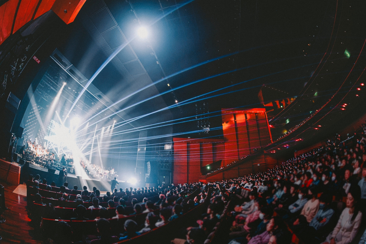 本編映像の上映とともに、「EARth」が響き渡り、観客を作品の世界観に誘うと、Benjamin、Laco、mpiの迫力満点で聴かせる「Möbius」からスタート。「83UeI」や、Benjaminとmpiによる「TRACER」など、ハサウェイの待ち受ける運命を彩る重厚感あふれるサウンドと、情緒豊かなムードの演奏が続いていく。劇中さながらの緊張感が会場を包む中、メインテーマ曲「XI」で前半パートが終了。
