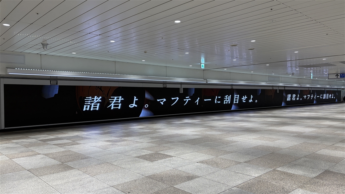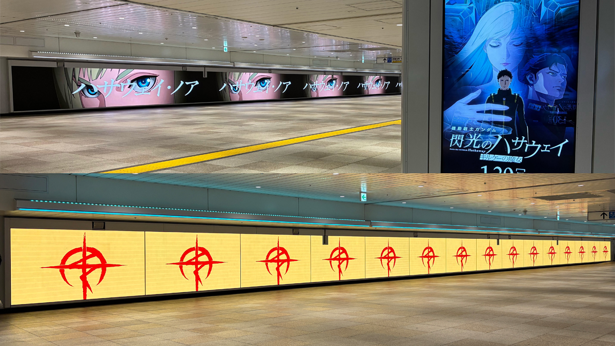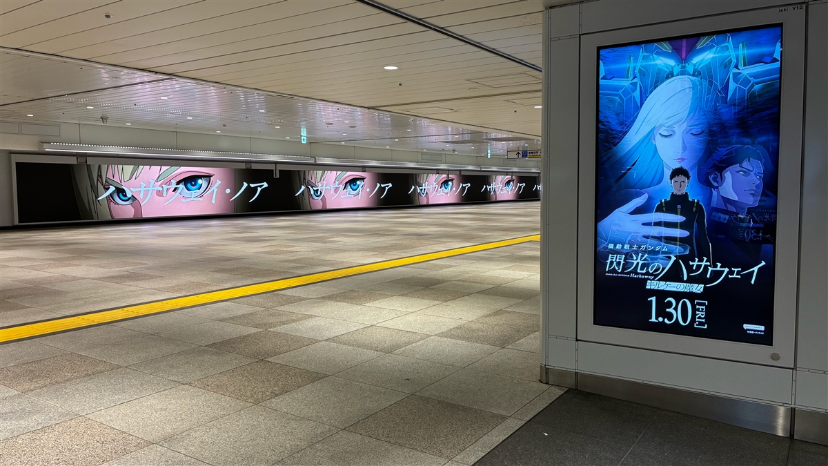 新宿駅の東西自由通路にて、『機動戦士ガンダム 閃光のハサウェイ キルケーの魔女』の広告を掲出中です。