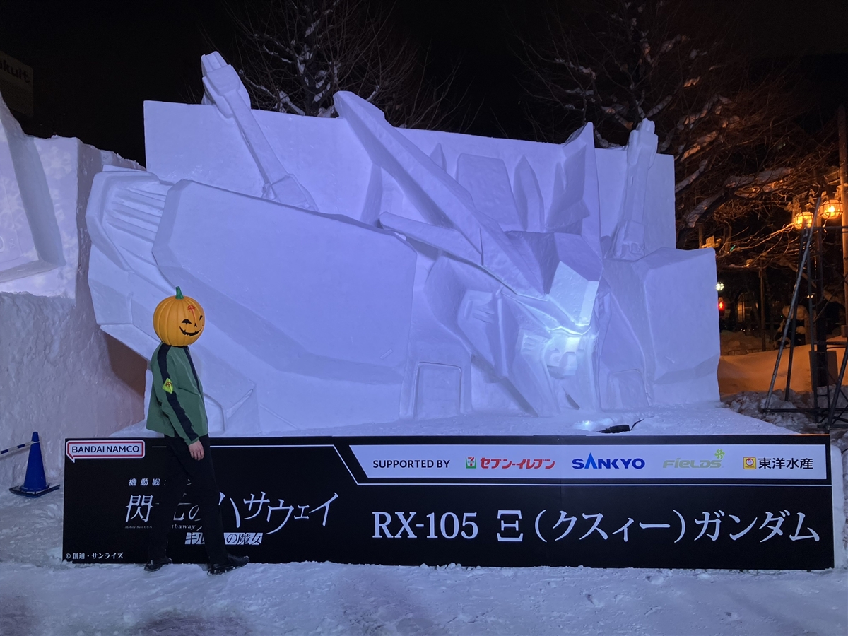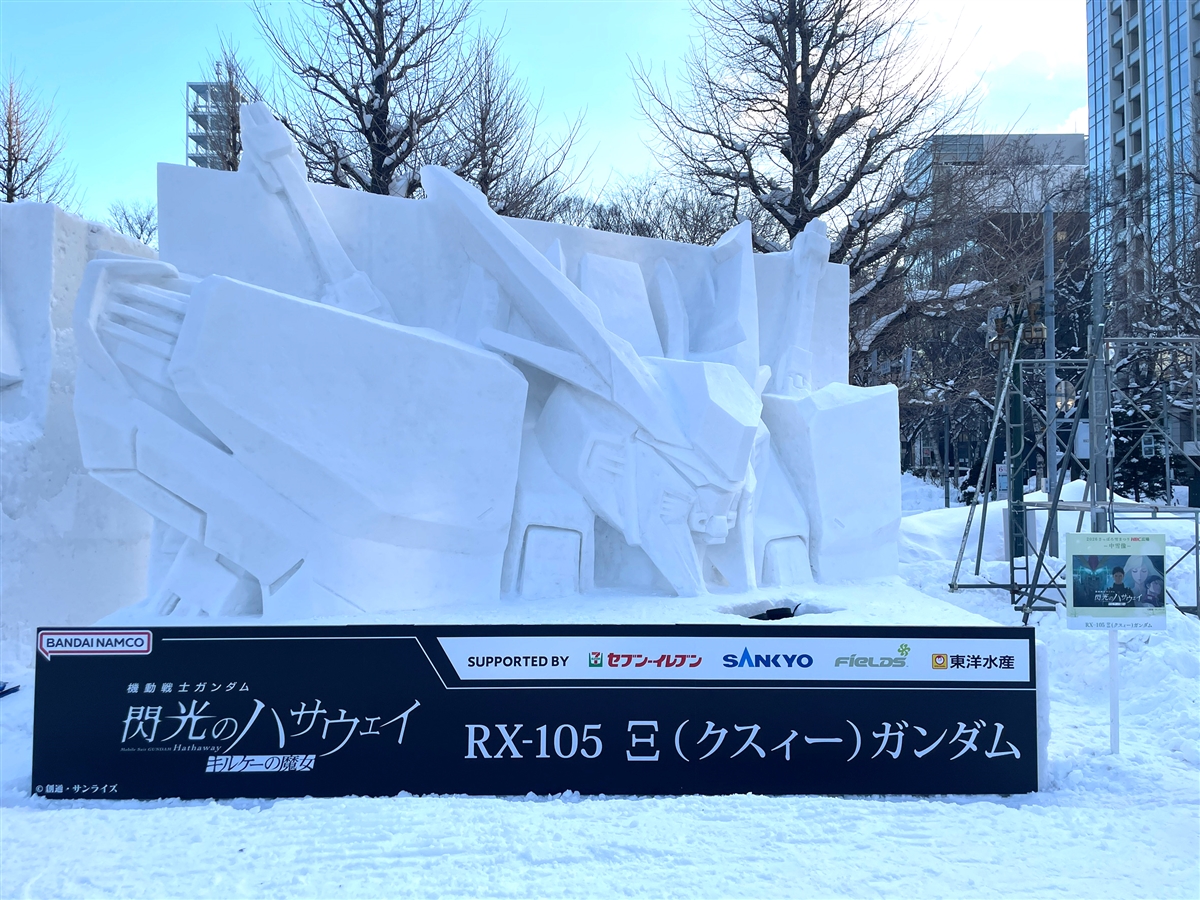 ガンダムシリーズ3回目の出展となる今回は、現在大ヒット公開中の『機動戦士ガンダム 閃光のハサウェイ キルケーの魔女』より「Ξ(クシィー)ガンダム」が「中雪像」となって、さっぽろ雪まつりの大通会場に登場。夜にはライトアップも行われている。