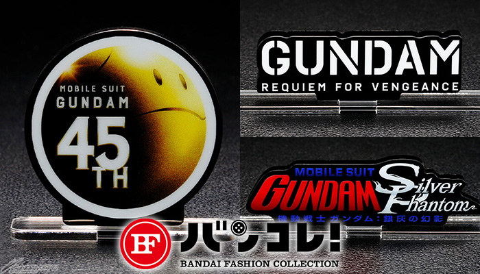 「ガンダムシリーズ45周年ロゴ」はカラー、イエロー、ホワイトの3種、『銀灰の幻影』はブラックとクリアの2種がラインナップする。