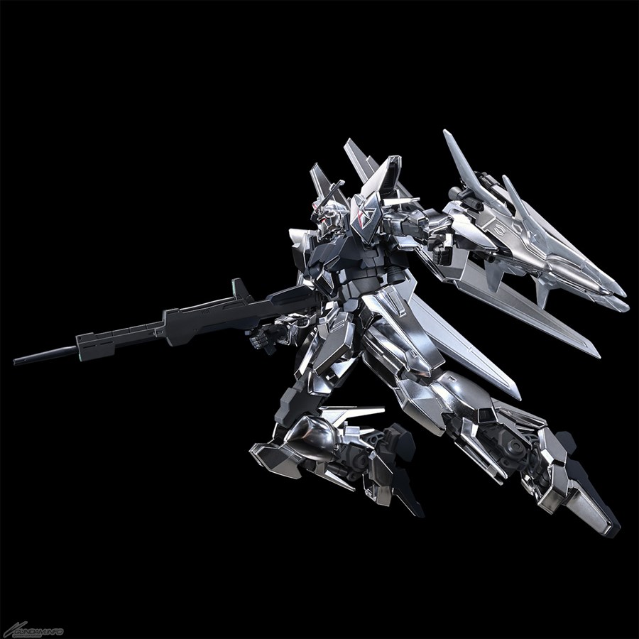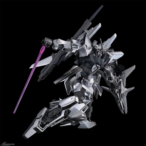 武装は背部に懸架可能なビーム・ライフルと、新規造形の専用シールドを収録。シールドは中央部のファンネルユニットの可動により、Iフィールド展開状態とファンネル形態の再現が可能。グローイングサイコフレームはパーツの差し替えにより発光状態を演出することができる。