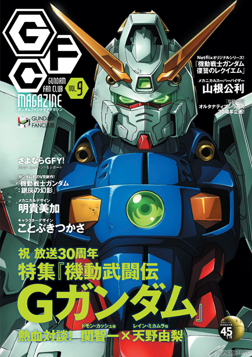 公式アプリ「ガンダムファンクラブ」(GFC)の会報誌「ガンダムファンクラブマガジン」の最新Vol.9は、祝 放送30周年として『機動武闘伝Gガンダム』を特集する。