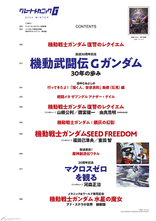 また、Netflixで話題沸騰中の新作『機動戦士ガンダム 復讐のレクイエム』より山根公利さん、彌富健一さん、由良浩明さん、『機動戦士ガンダムSEED FREEDOM』より福田己津央監督と重田 智さんへのインタビューも掲載。