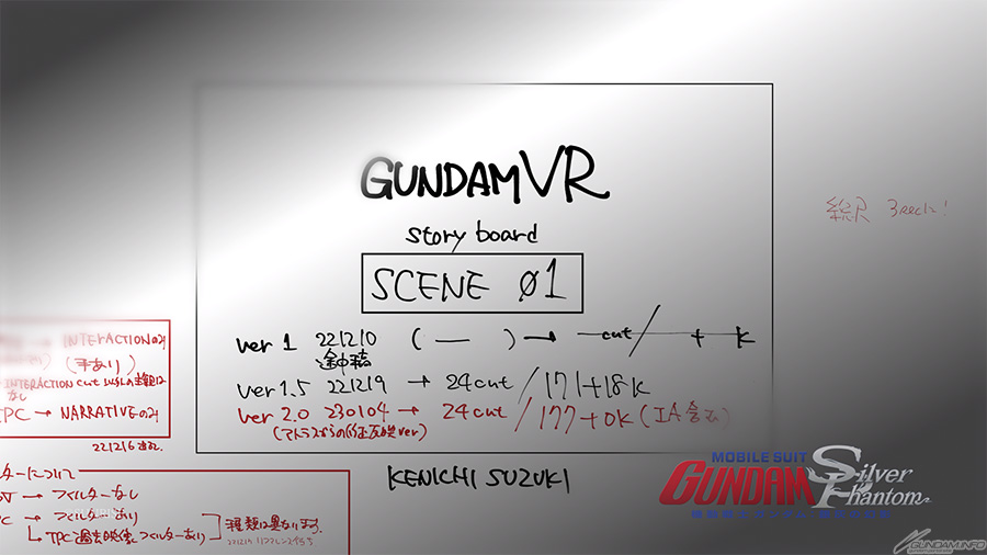 また、ガンダムをVR作品として表現するにあたっての技術的な挑戦や展望が語られ、本映像でもその制作過程の一端がうかがい知れるものになっている。