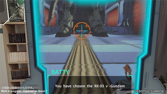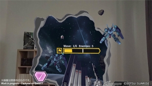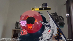 本作のMRでは、ユーザーの遊んでいる空間にモビルスーツが現れミニバトルを楽しめるほか、現実世界からモビルスーツを格納した「ドック」へワープし、モビルスーツを間近に感じられるなど、没入感満載のコンテンツが用意されている。