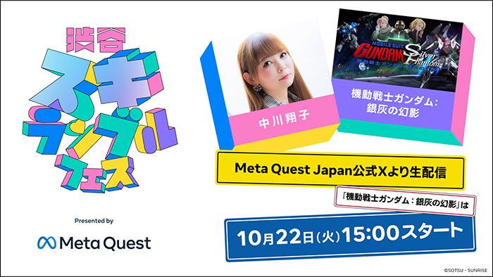 なお、イベントに先駆け、10月22日(火)にMeta Quest JapanのX公式アカウントにて「渋谷スキランブルフェス by Meta Quest」を生配信。総合司会をアルコ&ピースが担当するほか、『銀灰の幻影』からは主題歌「ACROSS THE WORLD」を歌う中川翔子さんと井上喜一郎プロデューサーがゲスト出演。主題歌へ込めた思いや制作時の苦労などを交えたトークセッションを実施する予定となっているので、配信をお見逃しなく。