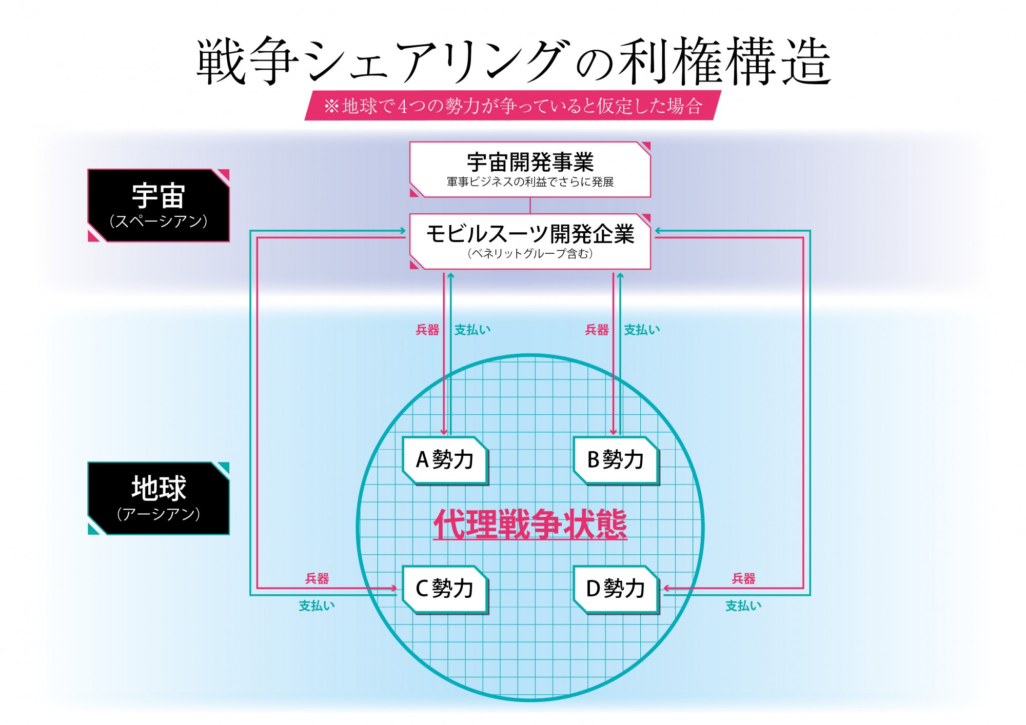 ベネリットグループを含むモビルスーツ開発企業が構築した軍事ビジネスモデル。